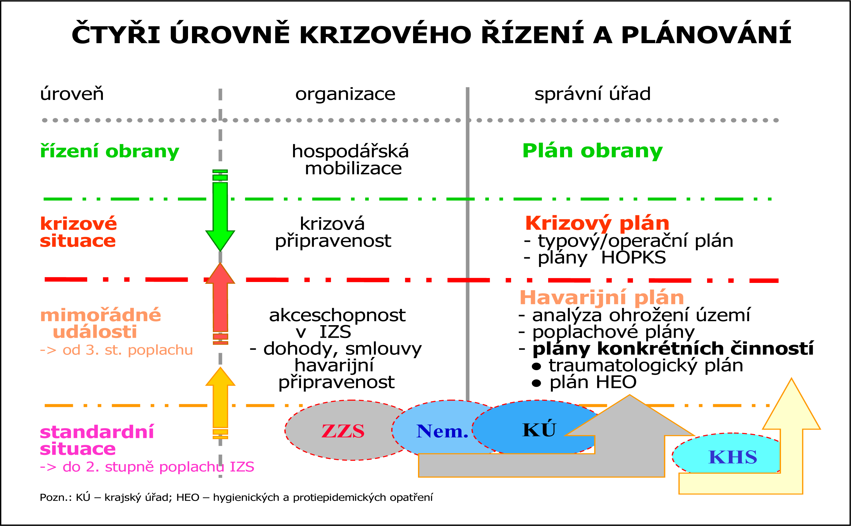 Lze vymezit čtyři upravené úrovně krizové řízení ve zdravotnictví: