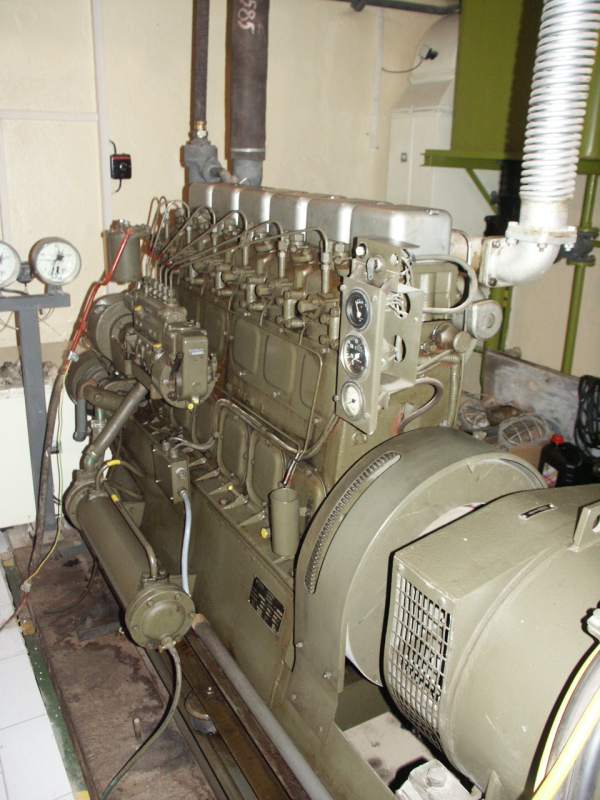 Dieselagregát a elektro Většina technického zařízení úkrytu je umístěna ve 3. podlaží. Základním článkem je dieselagregát typu 6S 110 s připojeným elektrorozvaděčem, který umožňuje ovládání hlavních elektrospotřebičů jako je filtroventilační zařízení, sterilizátory, čerpadla, destilační přístroje, akumulační kamna atd.. Dieselagregát má hodinovou spotřebu 15 litru nafty. Sání i výfuk jsou vedeny mimo kryt. Zásoba paliva postačuje na 48 hodin nepřetržitého provozu s plným zatížením. K chlazení se dá použít užitková voda z vlastní studny krytu. Elektrický rozvod je 380/220 V a za normálního stavu je napojen na venkovní elektrickou síť. Mimo to je instalován nouzový rozvod elektrické energie do pavilonů U a T FTNsP. Agregát je osazen kvalitními (kosmickými) akumulátory s dobíjecí stanicí.