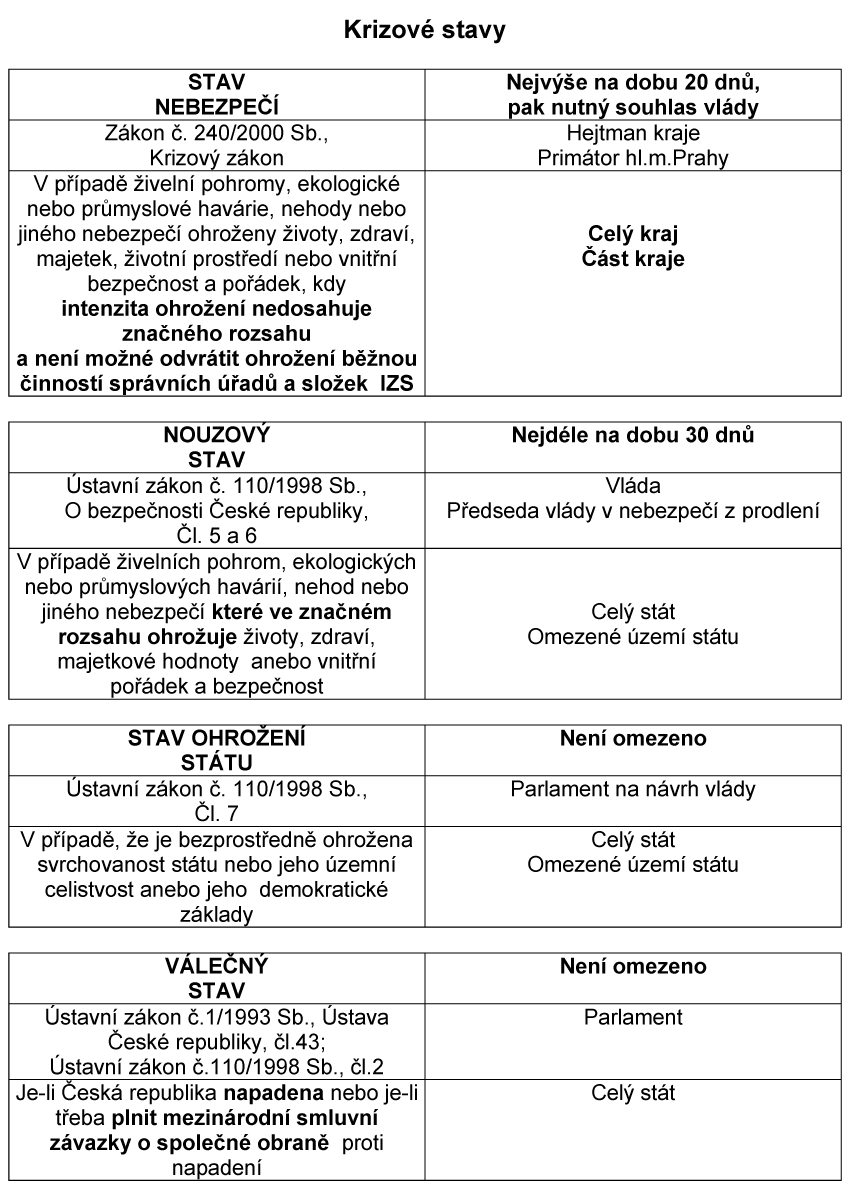 Základní funkci zdravotnictví krajského správního celku, tzn. zajistit v období vyhlášení krizových stavů zdravotní péči v nezbytném rozsahu (zákon č. 241/2000 Sb.) , je opřeno o účelnou restrukturalizaci soustavy zdravotnických zařízení a poskytovaných služeb tak, aby byla zajištěna zdravotní péče po obyvatelstvo v úrovni, která vyloučí možnost těžké újmy na zdraví z důvodu selhávání systému. Rozsah úkolů je zajišťován KRIZOVÝM PLÁNEM REZORTU ve smyslu typových plánů zdravotnictví (standardy pro krizové situace):