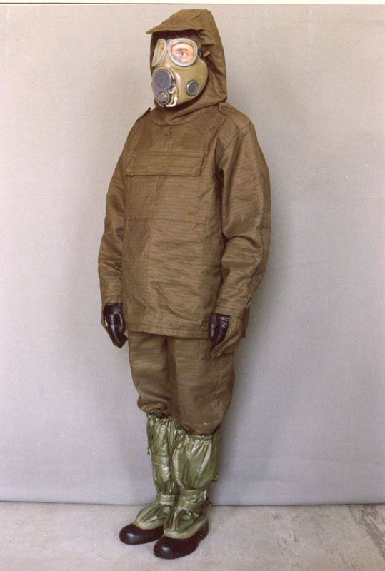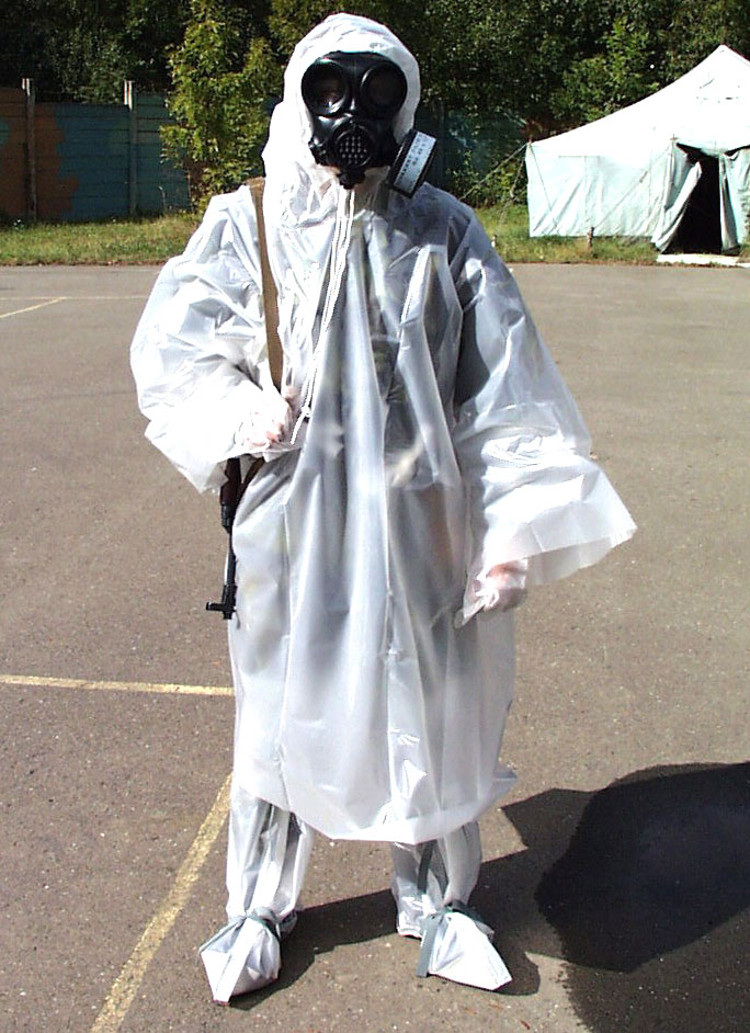 Zejména to jsou jednorázové ochranné oděvy z lehkých plastů ve tvaru velké pláštěnky s kapucí, chránící proti kapkám otravných látek a kontaktu s nimi. Do příslušenství patří ochranné rukavice a přezůvky za stejného materiálu (na podešvích zesílené). K tomuto typu ochrany patří jednorázová ochranná pláštěnka JP-75 (v tmavozelené barvě se samozhášecími vlastnostmi, tj. chránící i proti ohni, napalmu a světelnému impulsu jaderného výbuchu) a nová transparentní jednorázová ochranná pláštěnka JP-90, Na této nejjednodušší úrovni neexistují nikde ve světě jednoduché jednorázové prostředky pro civilní obyvatelstvo. Proto jsou doporučeny improvizované ochranné prostředky pro ochranu těla jako doplněk ochranné masky. Zásadně se doporučuje vícevrstvé oblečení, zvenku počínaje nejlépe plastovou pláštěnkou proti dešti (která poskytuje analogickou ochranu jako výše uvedený vojskový prostředek) s kapucí, tak, aby pokud možno nezůstala ani část povrchu těla nezakrytá. Ochranu rukou a nohou poskytují běžné (nikoliv textilní) rukavice a boty přes nárt, Pro ochranu části vojsk existují dále filtrační ochranné oděvy (které propouštějí vzduch a zachycují páry a drobné kapky OL. U nás existujefiltrační ochranný převlek FOP-85 a jeho modernizací vzniklý FOP-96 (do jejichž příslušenství náležejí také ochranné rukavice a přezůvky), které poskytují ochranu a při jistém fyziologickém komfortu mohou být nošeny bez přehřátí organizmu po několik hodin. Pro specialisty chemického vojska a civilní ochrany byly zavedeny izolační ochranné oděvy (pro vojska protichemický ochranný oděv OPCH-70 (dnes modernizován jako OPCG-05), jeho modifikací je speciální ochranný oděv civilní ochrany SOO-CO). Pro zlepšení fyziologických podmínek byl zaveden izolační filtroventilační protichemický oděv OPCH-90, který byl ve své době (přelom Pro nejtěžší podmínky (tj. pro vysoké koncentrace otravných látek, přítomnost vyšších koncentrací oxidu uhelnatého a nedostatek kyslíku ve vdechovaném vzduchu) existují izolační oděvy se zdrojem dýchání (stlačeným vzduchem nebo kyslíkem v tlakové láhvi, dodávaným do ochranné masky - láhev se nosí buď zevně, nebo v korozivním prostředí pod oděvem). Touto konstrukci, vyvinutou pro nejtěžší podmínky a korozivní prostředí se vyznačuje český ochranný oděv OPCH-90 PO. První pomoc a terapie při zasažení zpuchýřujícími látkamiZákladním opatřením při první pomoci, které je nutno uskutečnit co nejrychleji po zasažení zpuchýřujícími látkami, je dekontaminace nechráněné části povrchu těla standardním univerzálním prostředkem prvotní dekontaminace (detoxikace) DESPRACH, který je součástí zdravotnického prostředku ochrany jednotlivce ZPJ - 80. ZPJ-80 obsahuje následující komponenty: